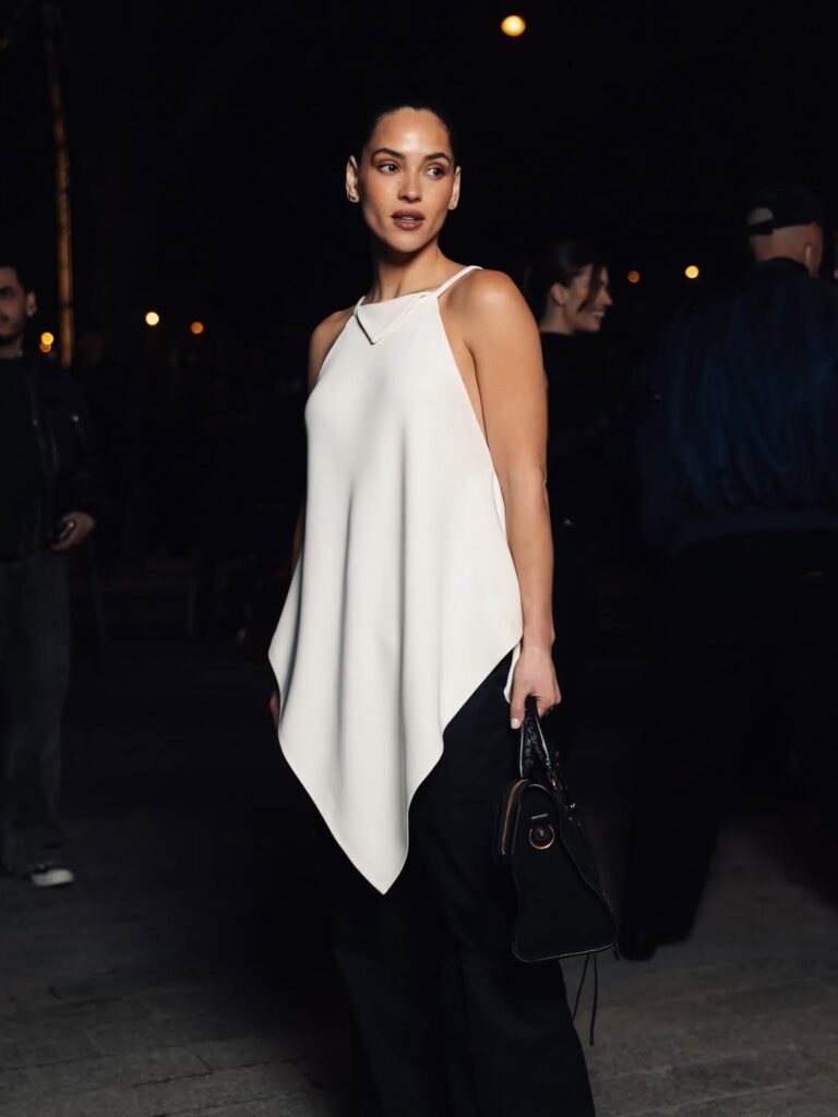 El conjunto que eligió Adria reflejaba sofisticación y modernidad, en sintonía con la estética vanguardista de Balenciaga, que en esta temporada apostó por un estilo de claroscuro, mezclando luces y sombras en un espectáculo de alto impacto visual.