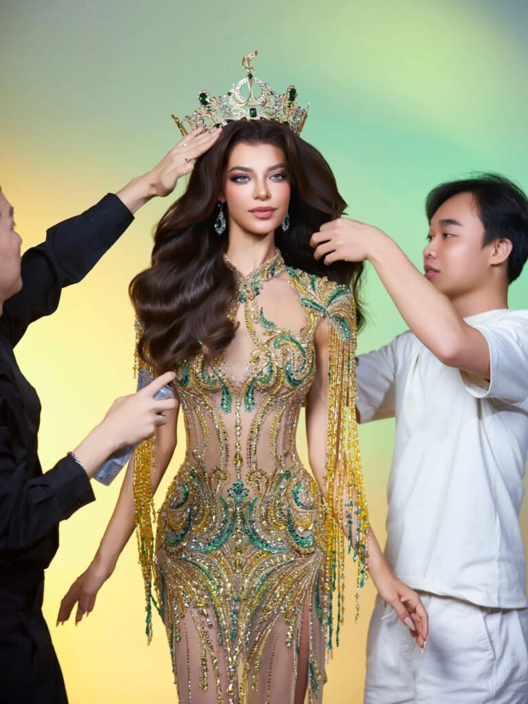 Durante la fase de traje de baño, Lendl desfiló con un atuendo azul de dos piezas, mostrando presencia, equilibrio y una actitud confiada que la diferenció del resto. En la presentación de traje de gala, apareció con un vestido dorado con detalles azules, diseñado por una casa vietnamita, con el que proyectó elegancia sin excesos y una postura escénica de nivel internacional.
