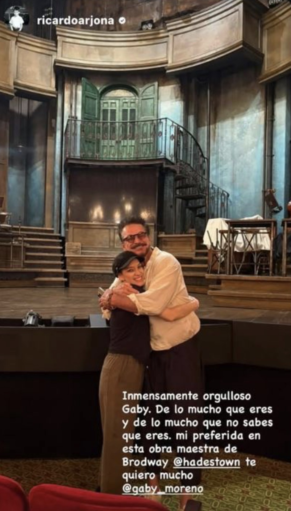 El cantautor guatemalteco Ricardo Arjona compartió una fotografía junto a Gaby Moreno tomada en un teatro de Broadway, imagen que comenzó a circular con fuerza en redes sociales.