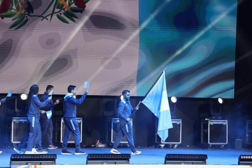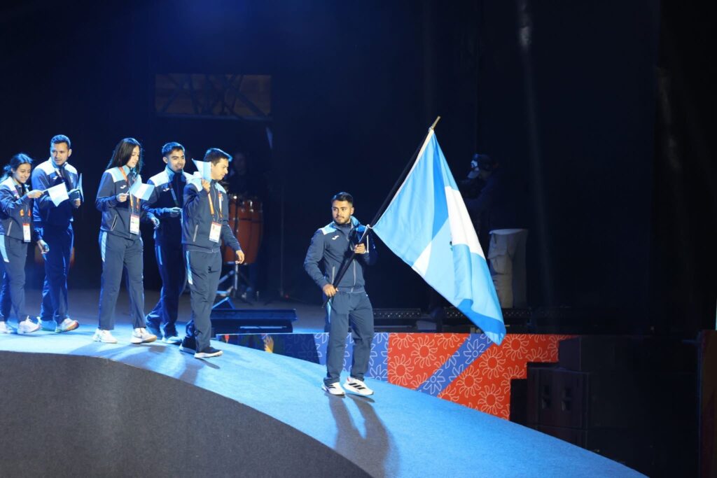 En medio del desfile de países, el pabellón azul y blanco destacó por su presencia limpia, firme y perfectamente sincronizada con el ingreso de los atletas guatemaltecos, quienes avanzaron con paso seguro y un porte que dejó clara la identidad deportiva que hoy representa al país.