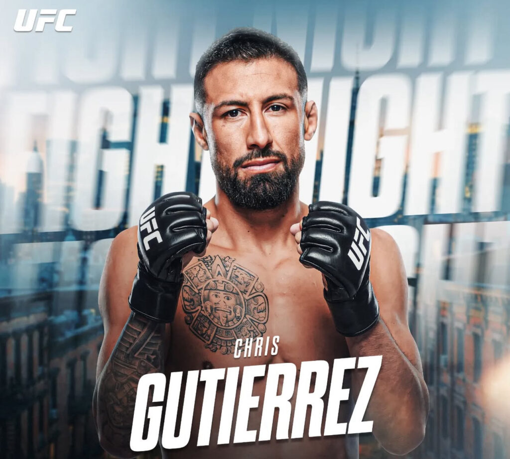Gutiérrez, nacido el 22 de abril de 1991, compite en la división de peso gallo y llega con un récord profesional de 22 victorias, 6 derrotas y 2 empates. Conocido por su explosividad, acumula 9 triunfos por nocaut, además de haber dejado su marca en el deporte con victorias memorables, como el espectacular rodillazo que noqueó al histórico Frankie Edgar.