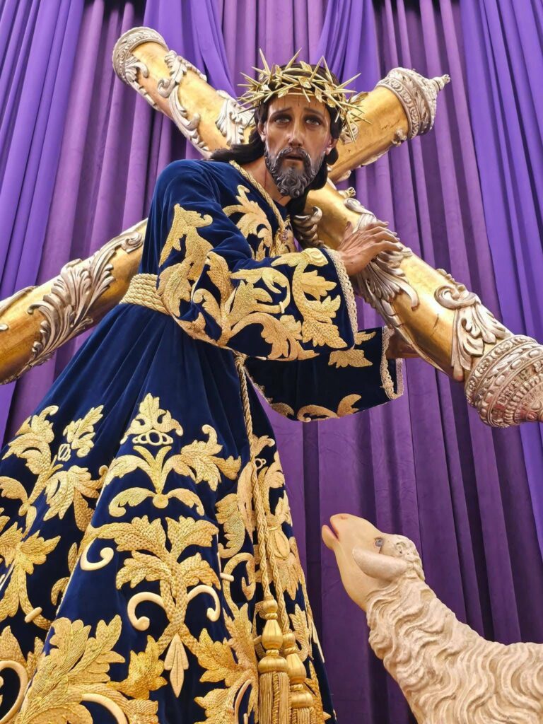 La talla, atribuida a los escultores Juan y Santiago Ganuza en el siglo XIX, representa a Cristo camino al Calvario con una expresión serena y profunda que ha marcado generaciones. A lo largo del tiempo ha sido objeto de restauraciones que han permitido conservar su presencia y su carácter devocional.