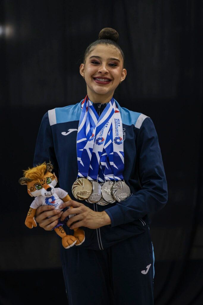 González conquistó la medalla de oro en la final de mazas, demostrando una vez más su técnica refinada, elegancia y control. Además, obtuvo la plata en la final de cinta, sumando otro logro a su destacada trayectoria. Su desempeño también fue clave para que el equipo guatemalteco, integrado por Daniella González, Luisa Velásquez y Camila Díaz, se alzara con la plata por equipos, consolidando el talento y la proyección de la gimnasia rítmica nacional.