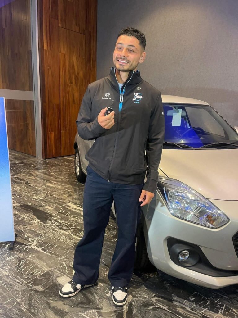 Con una sonrisa confiada y la calma que lo caracteriza en la cancha, Lom fue el afortunado en extraer la llave ganadora, llevándose el vehículo que, sin duda, será un símbolo de su creciente éxito.
