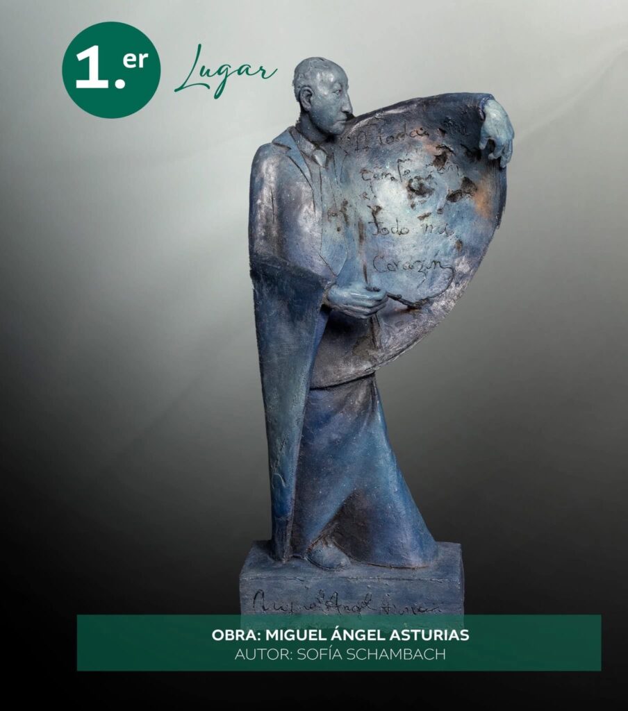 Su formación internacional y su sensibilidad artística la posicionan como una de las jóvenes promesas del arte guatemalteco. Su propuesta muestra a un Miguel Ángel Asturias joven, envuelto en un lienzo con fragmentos de sus poemas. Una mezcla de escultura y poesía que emocionó al jurado.