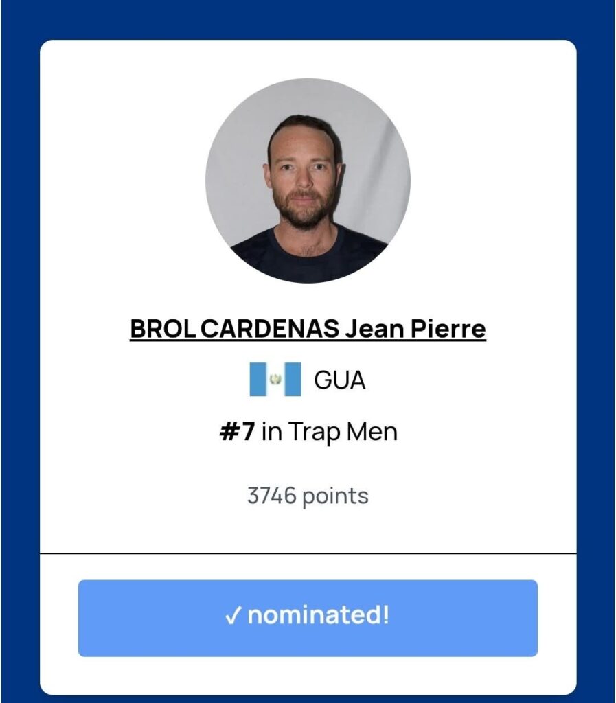 El tirador guatemalteco Jean Pierre Brol ha alcanzado un nuevo hito en su carrera deportiva al figurar entre la amplia lista de nominados al premio de Mejor Deportista del Año 2025 de la International Shooting Sport Federation (ISSF). Este reconocimiento, que reúne a los mejores talentos del tiro deportivo a nivel mundial, pone en relieve el extraordinario momento que atraviesa Brol.