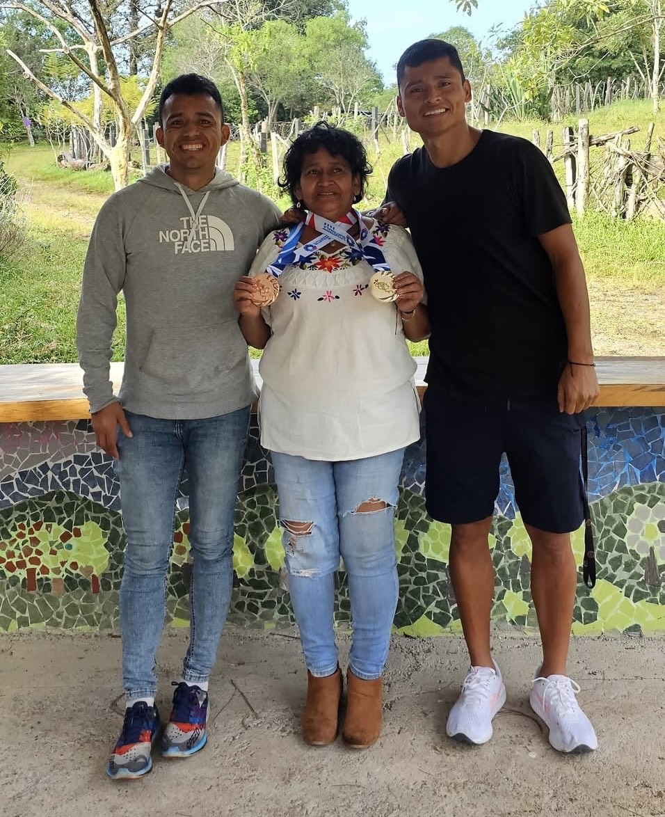 La fotografía, tomada en su natal San Cristóbal Verapaz, muestra algo más que medallas. Refleja la raíz de una familia que hizo del esfuerzo una costumbre y del amor, su mayor impulso.