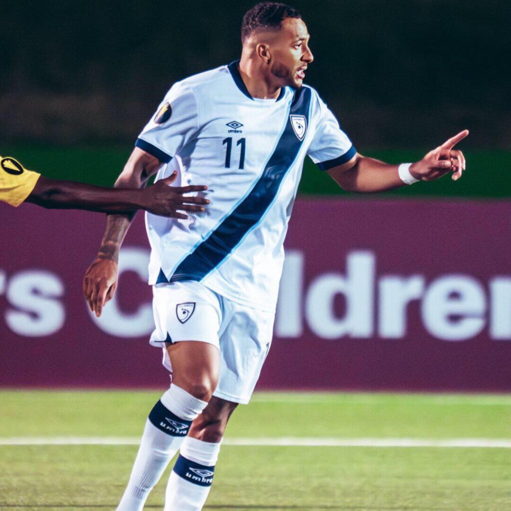 “Usar esta camiseta es un honor“, escribió el futbolista en tanto se le ve en un partido que disputó Guate hace algunos meses en el Cementos Progreso frente a República Dominicana, como parte del proceso de clasificación al Mundial 2026.