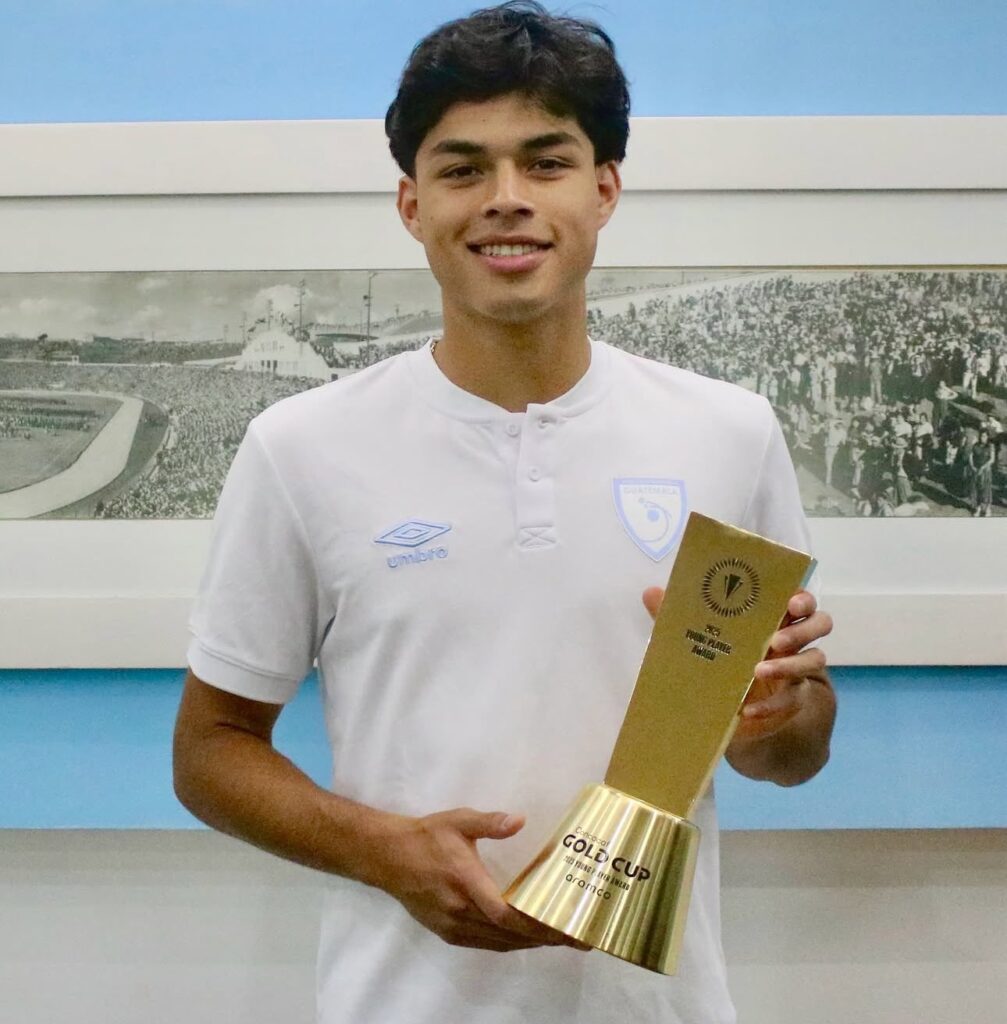 Olger Escobar luce premio como mejor jugador joven de la Copa Oro 2025. Foto: cortesía