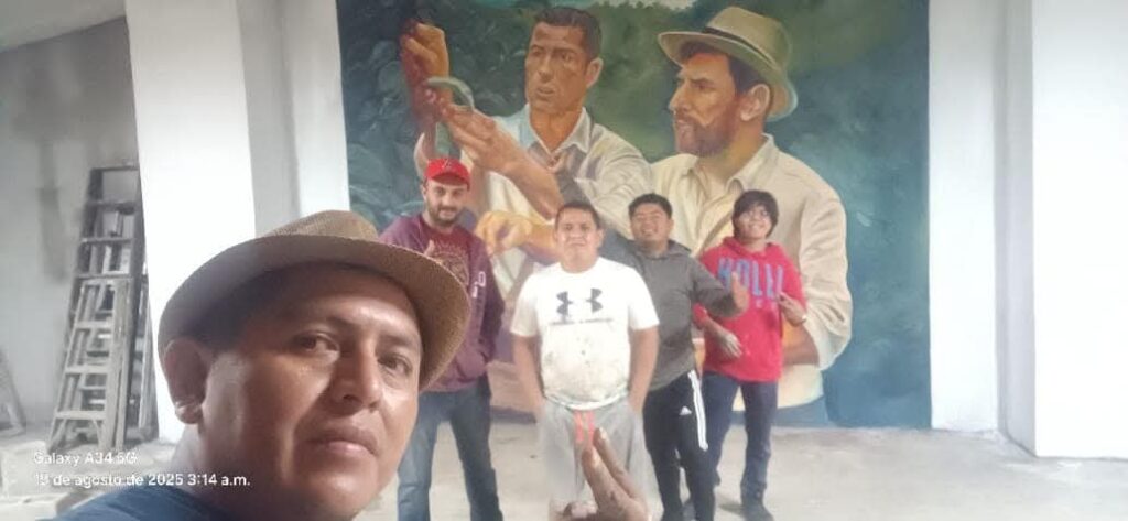 Se trata de un mural que fue elaborado por un grupo de vecinos/pintores de Colomba Costa Cuca, Quetzaltenango. La imagen, además de ser llamativa, ha dado de qué hablar en la red. Y no es para menos.