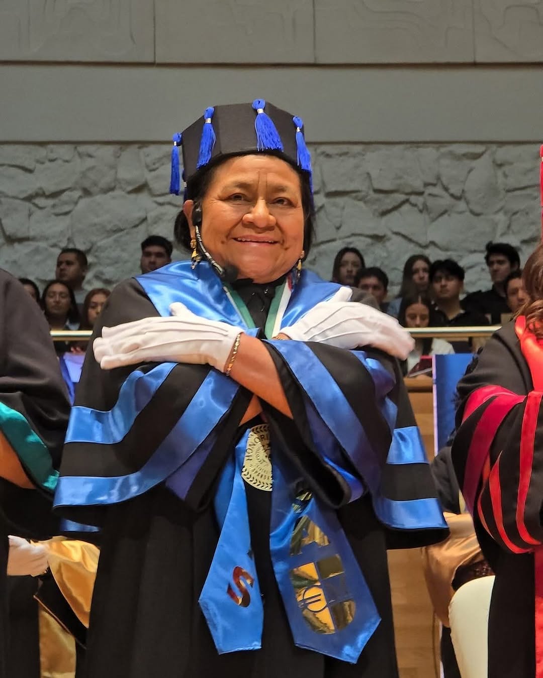 Los organizadores de tan importante evento otorgaron a Rigoberta Menchú un Doctorado Honoris Causa. A través de sus redes sociales, la Premio Nobel de la Paz agradeció el reconocimiento recibido.