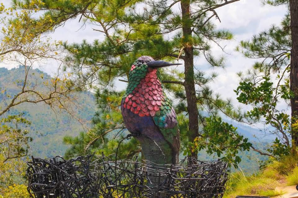Su obra, titulada “Rusoq Tz’unun”, cuyo significado en Tz’utujil es “Nido del colibrí”, se alza imponente con tres metros de altura. Elaborada con una técnica minuciosa que combina ferrocemento, hierro y materiales reciclados, incluyendo escritorios de una escuela, esta escultura no solo asombra por su estética, sino que emociona por la historia que guarda.