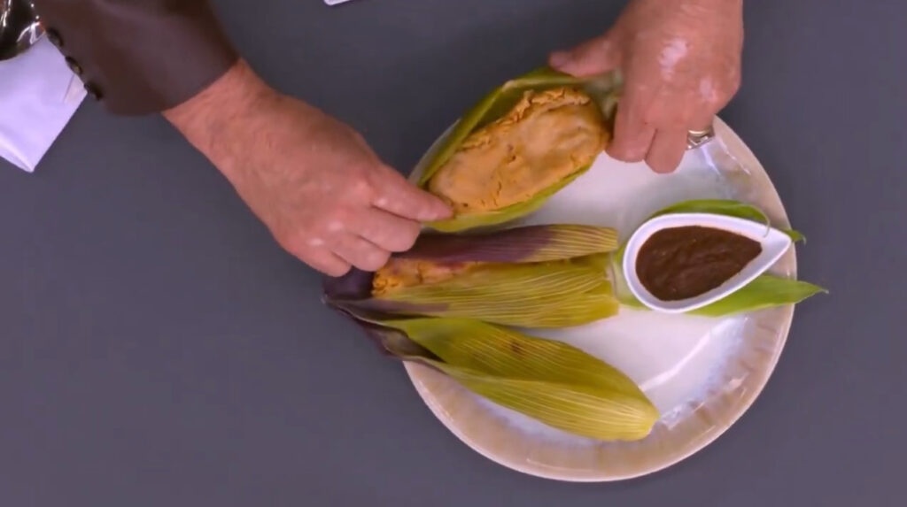 En un reto de eliminación sorpresa, donde los participantes debían conquistar a los jueces con un plato lleno de historia, Sandarti decidió poner en alto a nuestra tierra con una propuesta llamada “Mis ancestros”: tres tamalitos de cerdo bañados en salsa roja, inspirados en los clásicos chuchitos que han acompañado generaciones en Guate.