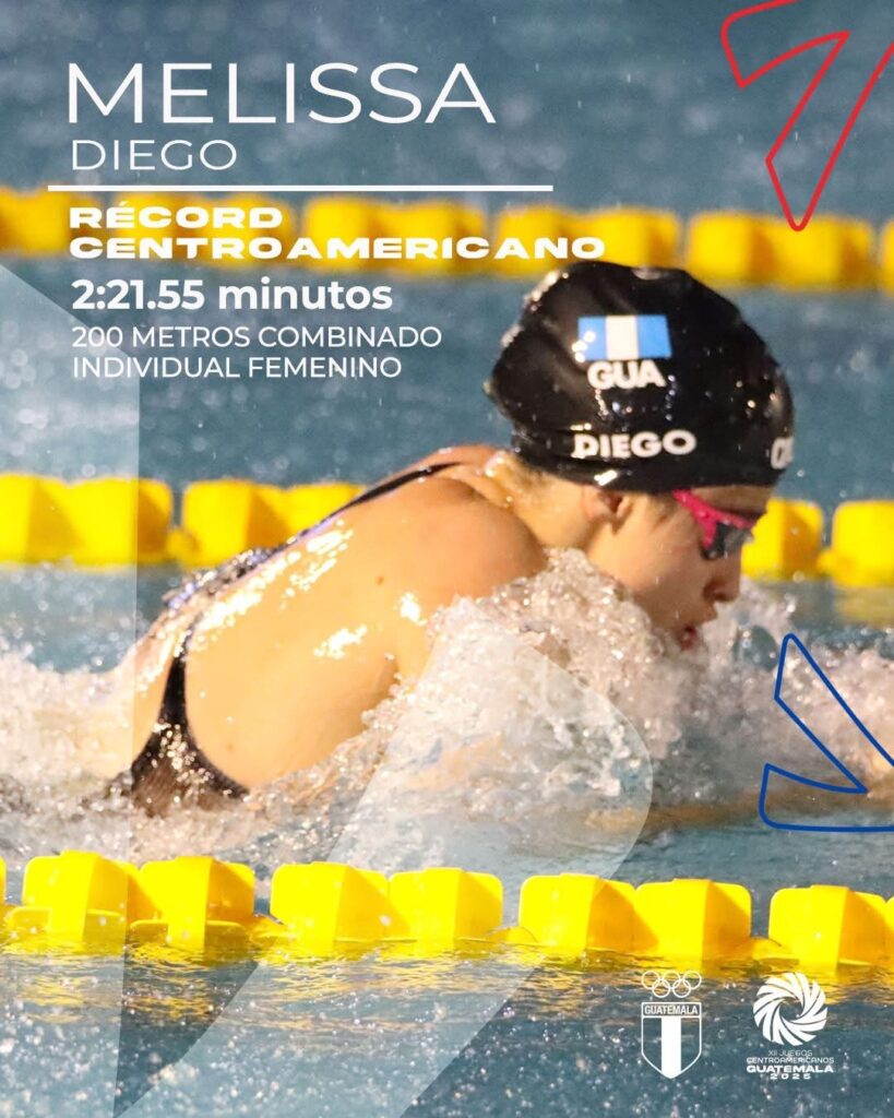 La nadadora Melissa Diego consiguió su tercer oro en los Juegos Centroamericanos 2025 al ganar la prueba de 200 metros dorso, consolidándose como una de las atletas más destacadas de la delegación guatemalteca.