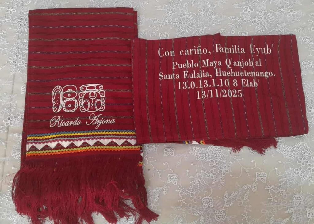 La música de Ricardo Arjona recibió un detalle inesperado y profundamente simbólico: una bufanda confeccionada por Ixchel Baltazar Nicolás, mujer maya Q’anjob’al orgullosa de sus raíces y de la historia que representa su pueblo. No fue un simple obsequio. Fue un puente cultural que viajó más de doce horas para llegar a sus manos y contar quiénes somos.