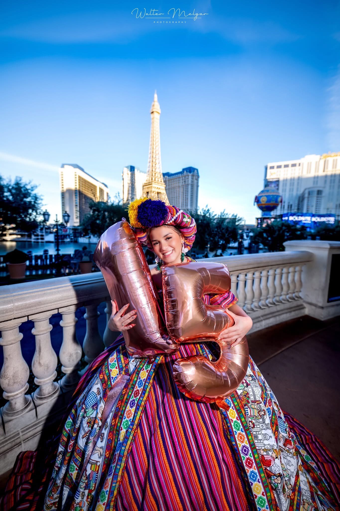 La escena entera se transformó. Las Vegas vio por primera vez cómo la tradición guatemalteca se imponía con elegancia y orgullo, y cómo una quinceañera podía convertir un rincón turístico en un altar a su cultura.